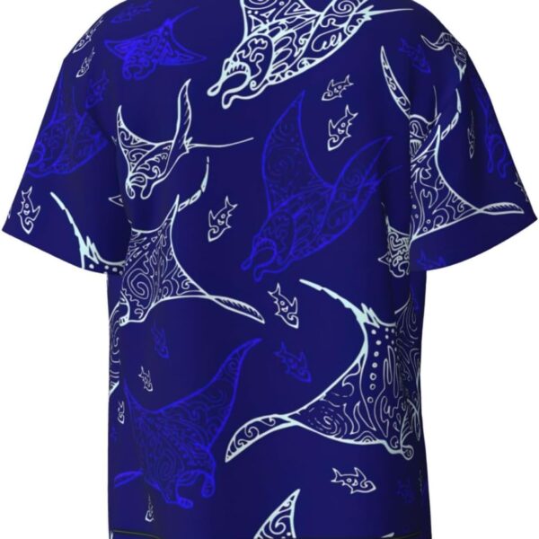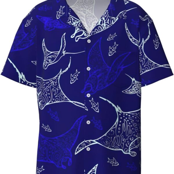 Medium Men Casual Short-Sleeved Shirt – Summer Hawaiian Beach Tops for Outdoor Trips & Everyday Wear Manta Ray and Fish Black