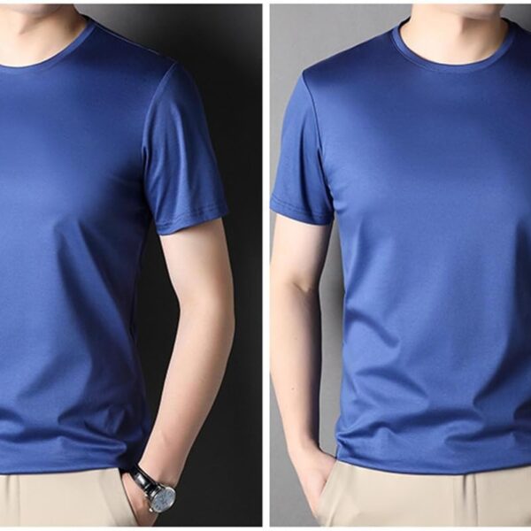 Mulberry Silk Men Short-Sleeved T-Shirt,New Summer Round Neck ice Silk Breathable T-Shirt