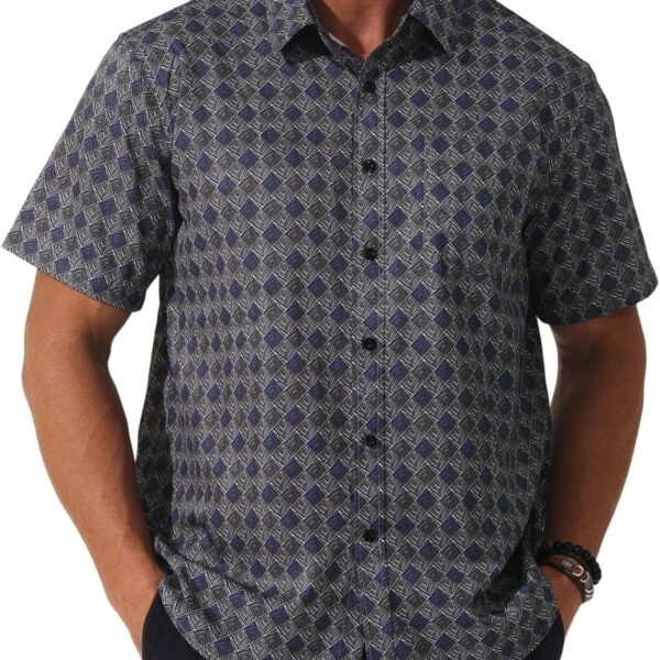 Men Short Sleeve Printed Business Shirt Button Down Dress Casual Polka Dot Print Shirt