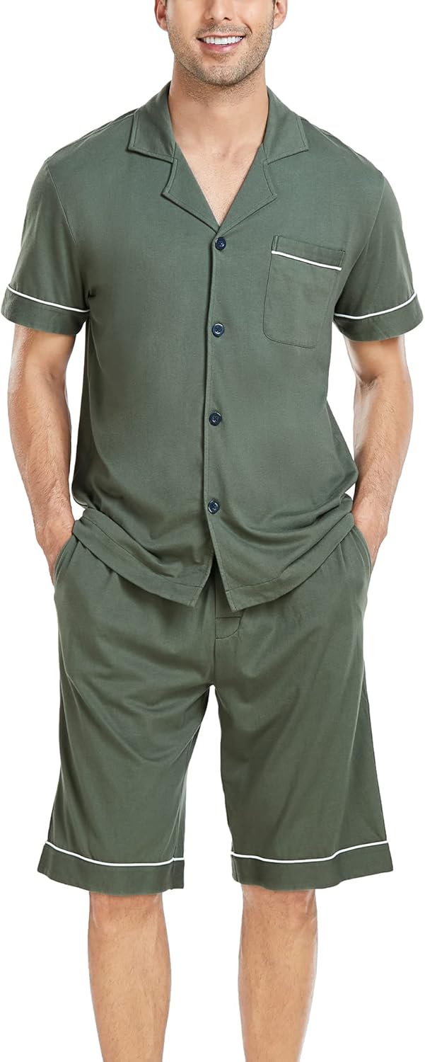 • PRACTCAL PAJAMA BOTTOMS: Pajama short set come with an elastic waistband and drawstring so you get a perfectly personalized fit; The men’s PJ set’s pants features side pockets that you can put little things such as keys, phone or cash and so on