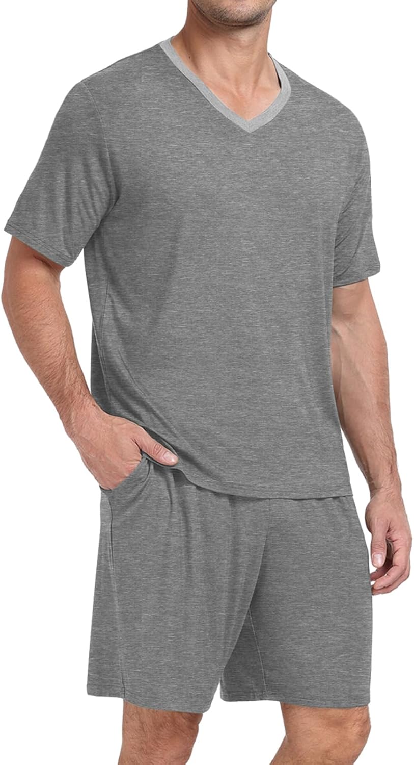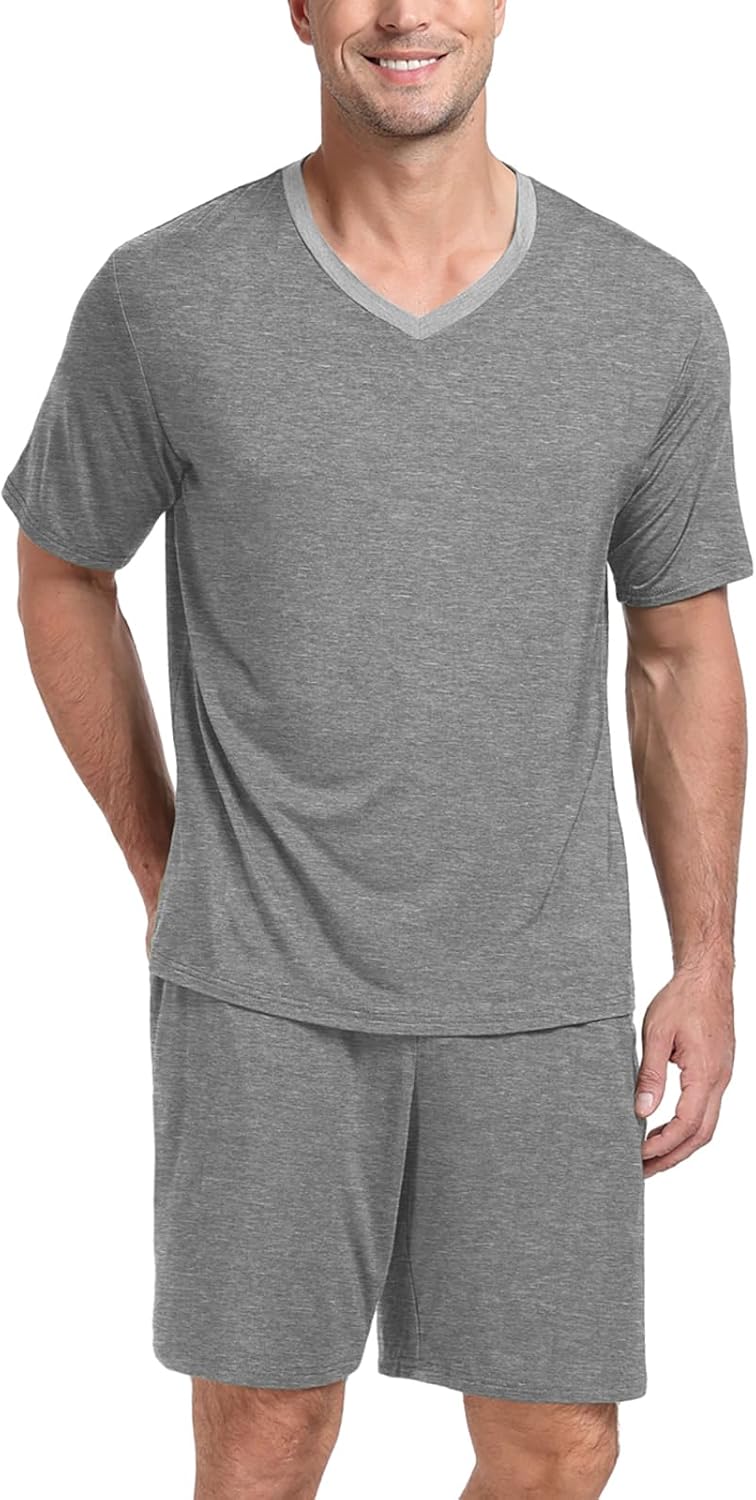 MenPajama Set Sleepwear Pjs Lightweight Quick Dry Short Sleeve V-Neck Shirts and Shorts Soft Comfy Sleep Sets