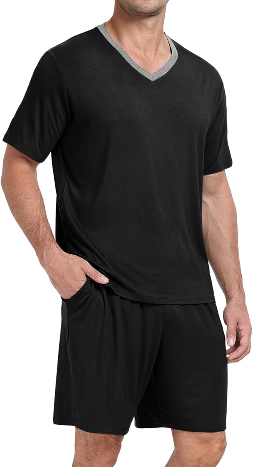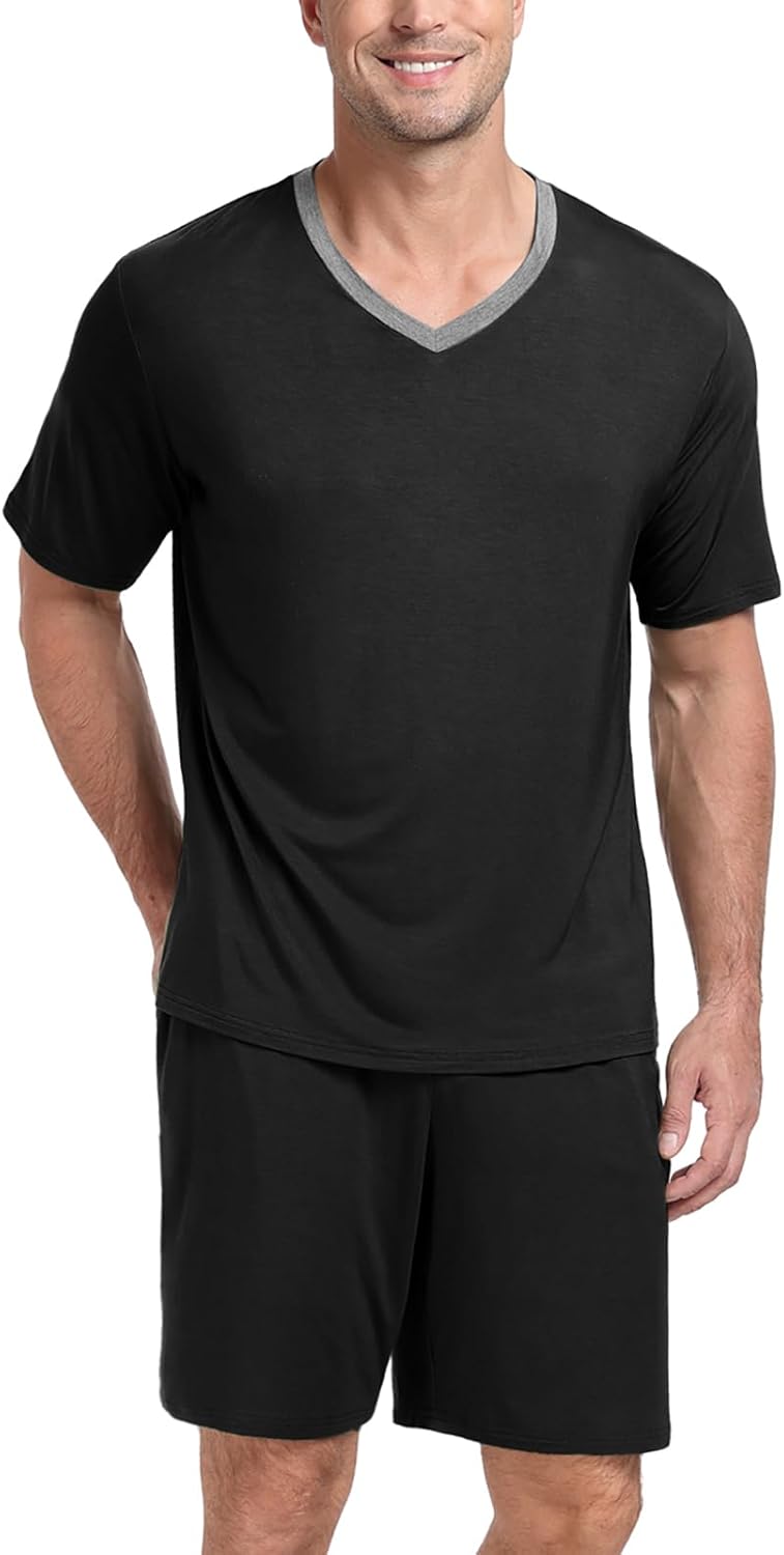 - Comfortable and Cozy: The Mens Pajama Sets are made with a soft, breathable and Elastic Modal knit fabric, The short sleeve top and shorts are designed with a relaxed fit, allowing for ease of movement and a comfortable sleep