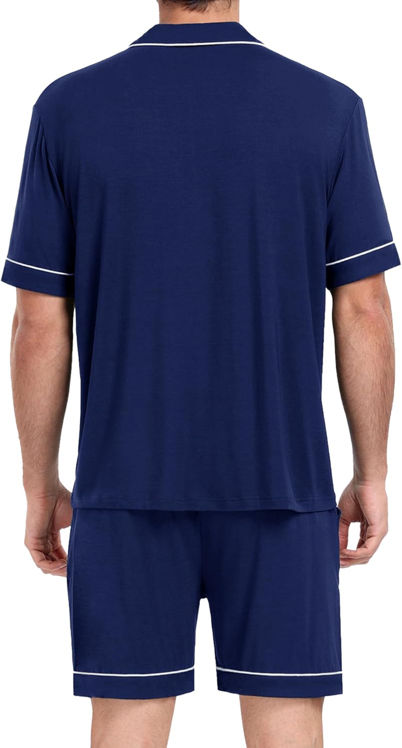 Mens Pajamas Set Short Sleeve Sleepwear Button Down Loungewear Set Soft Modal 2Pcs Pj Set with Pockets S-3XL