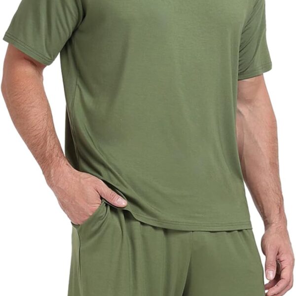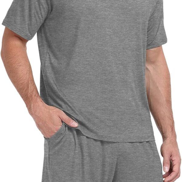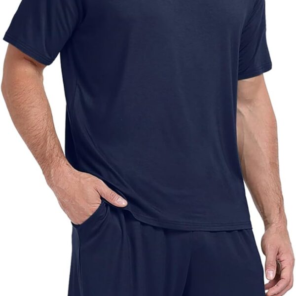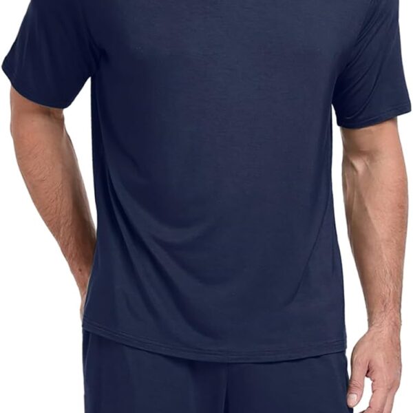 MenPajama Set Sleepwear Pjs Lightweight Quick Dry Short Sleeve V-Neck Shirts and Shorts Soft Comfy Sleep Sets