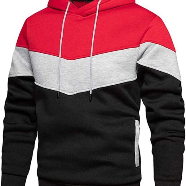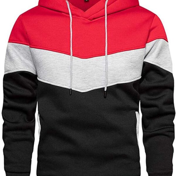 Mens Hoodies Pullover Color Block Fce Long Sve Sweatshirt Tops with Pocket
