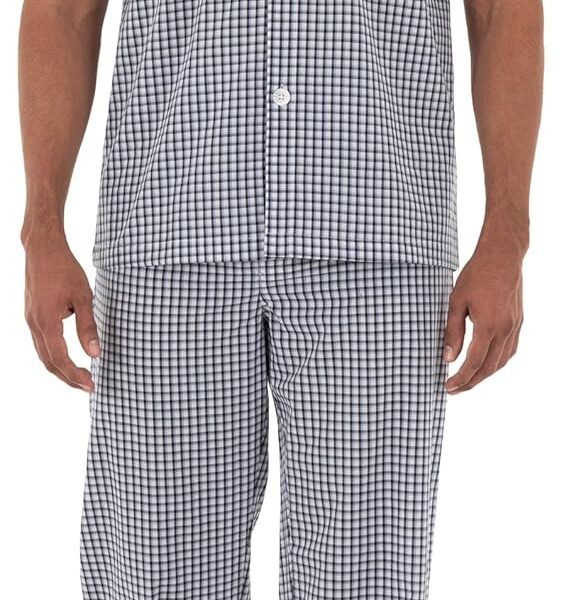 mens Broadcloth Short Sleeve Top and Long Pants Pajama Set