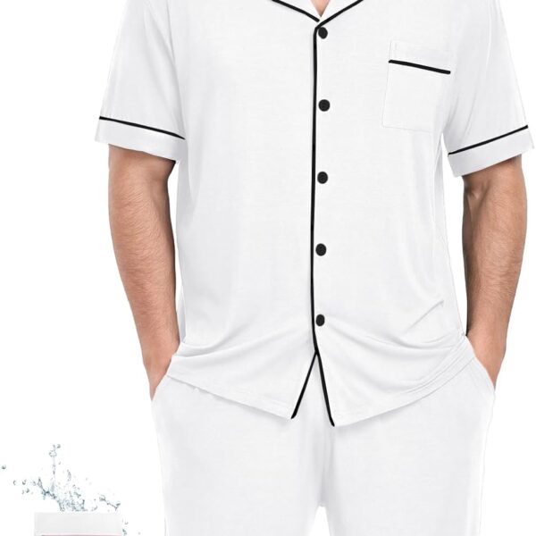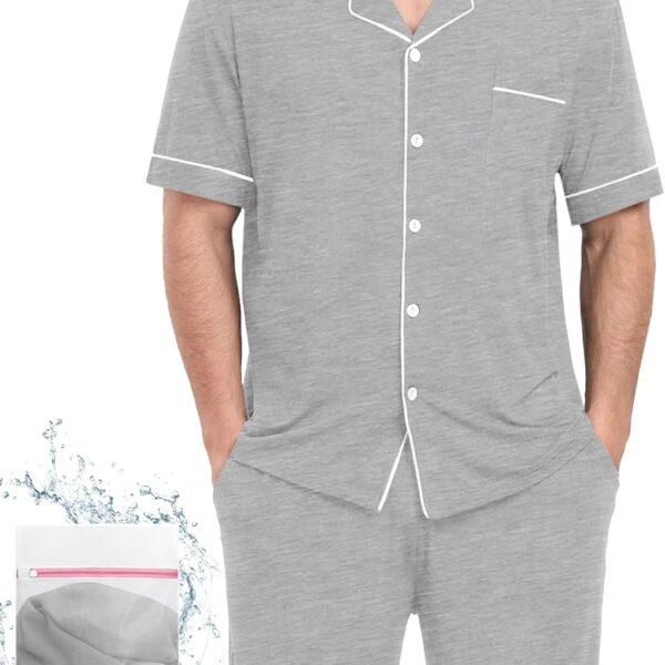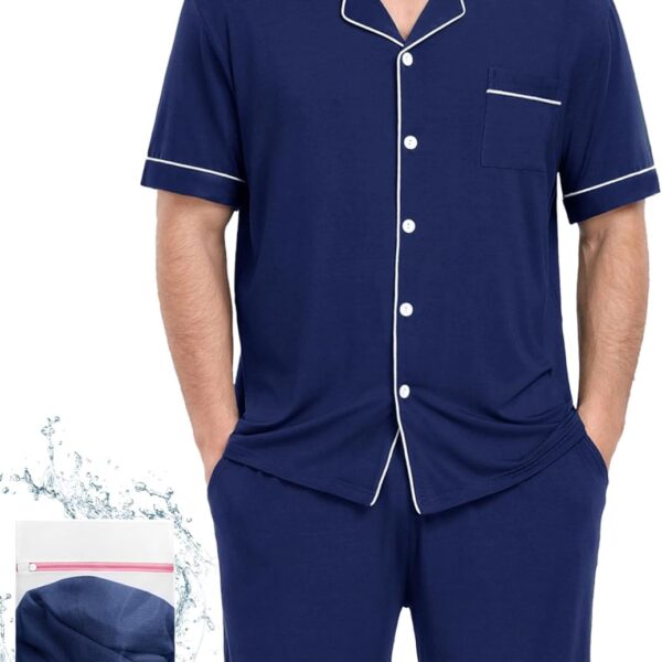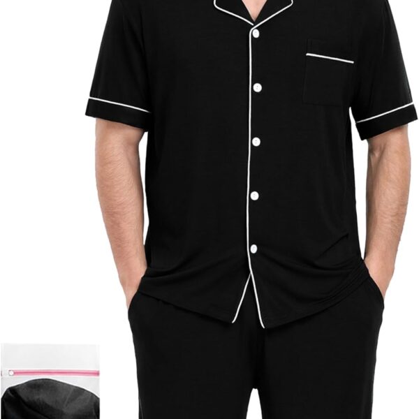 Mens Pajamas Set Short Sleeve Sleepwear Button Down Loungewear Set Soft Modal 2Pcs Pj Set with Pockets S-3XL