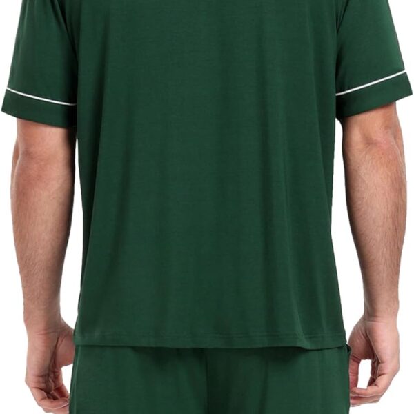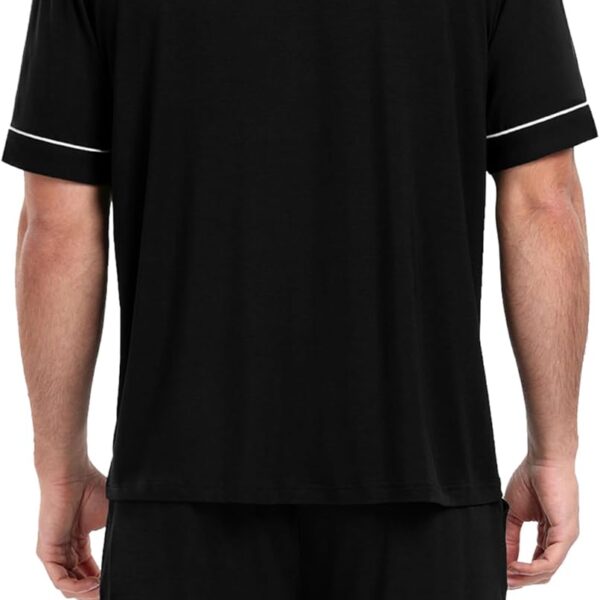 Mens Pajama Set Short Sleeve Sleepwear Summer Lightweight Pjs Set 2 Piece Comfy V-Neck Nightwear With Pockets S-3XL